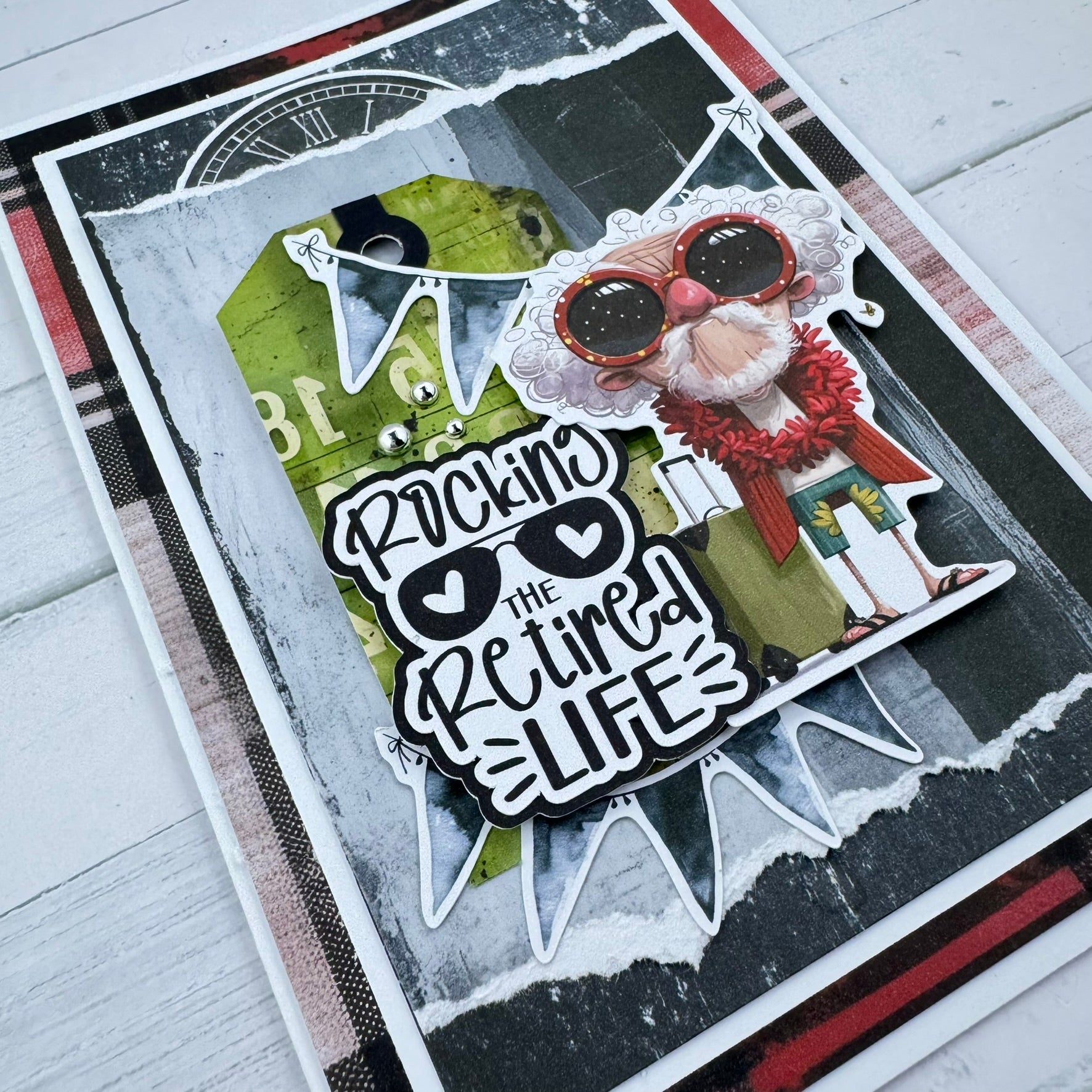 This fabulous, fun mini card kit was designed with ephemera & pattern papers from "The Retired Life" a Simply Stated Design collection.