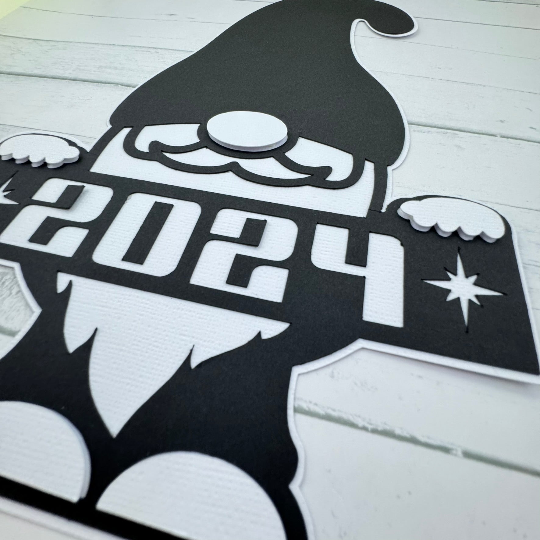 New Year gnome cut from white Precision Cardstock and black 100lb flat cardstock.
