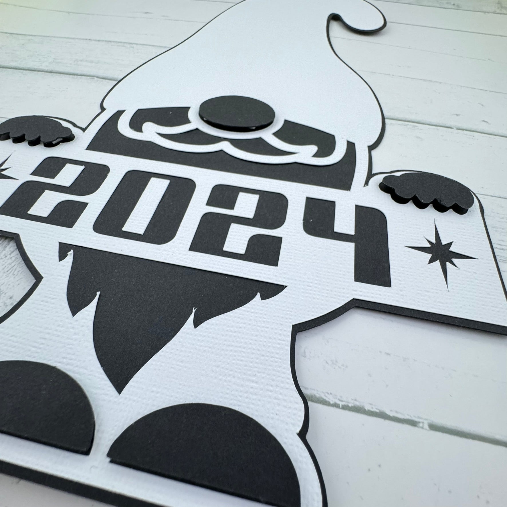 New Year gnome cut from white Precision Cardstock and black 100lb flat cardstock.